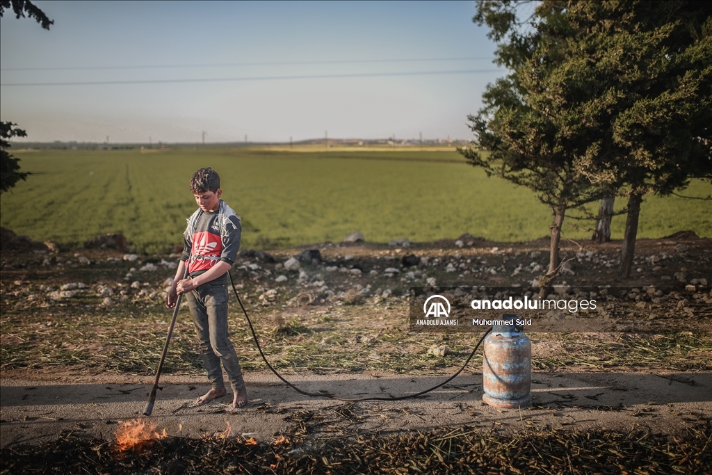 Annesi ile firik işinde çalışan 4. sınıf öğrencisi İbrahim Esvad ise bu iş yaparken vücudunda yanıklar oluştuğunu ve bir an önce Esed rejimince yerinden edildikleri evlerine tekrar kavuşmak istediğini söyledi.