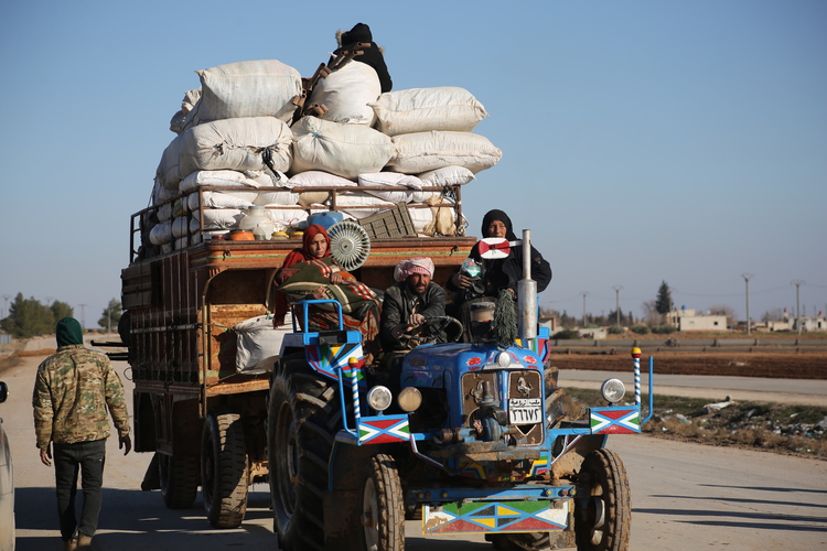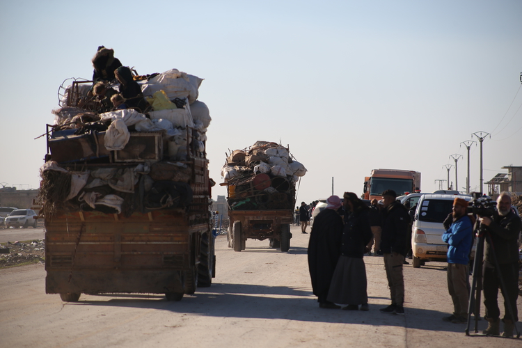 AA ekibi, Harmel İmam Köyü'nde Suriyeli sivillerin geçici olarak güvenli bölgelere tahliyesini görüntüledi.
