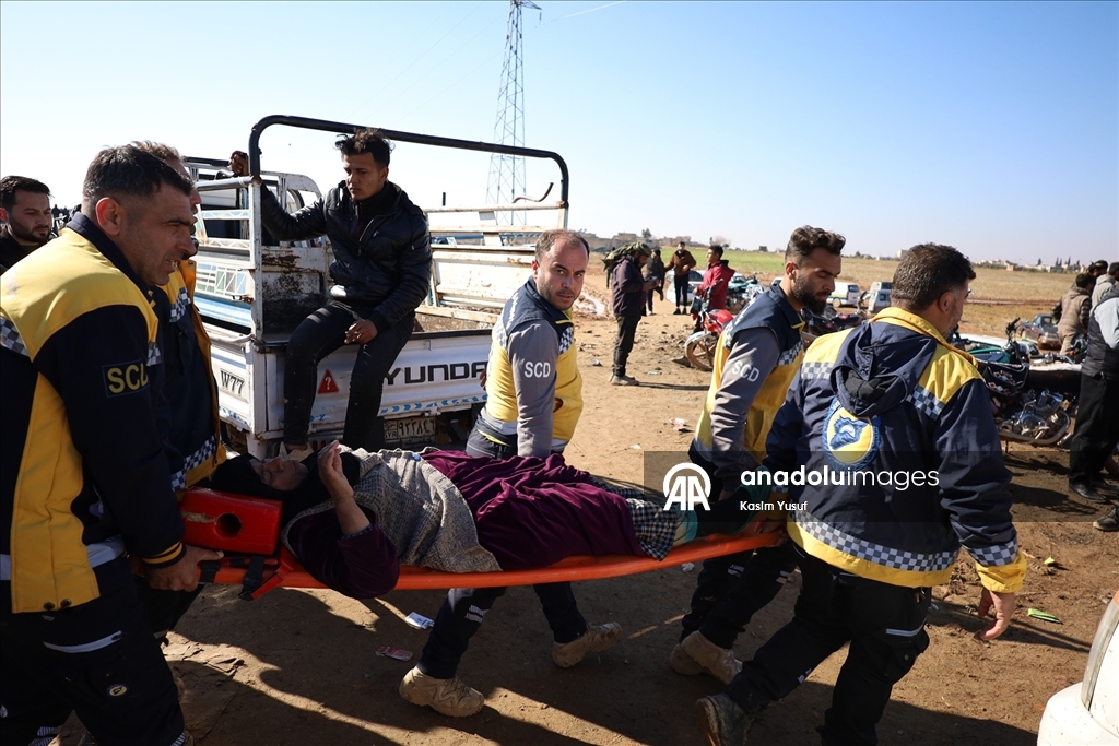 Suriye Sivil Savunma ekipleri, bölgeden çıkan ailelerin kayıtlarını tutarken, kontrol noktalarında konuşlu ambulans ve yardım ekipleriyle ihtiyaç sahiplerine destek sağlıyor.