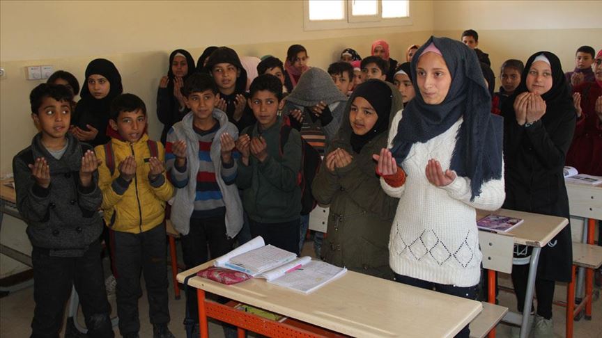 Fırat Kalkanı Harekatı ile terörden arındırılan Cerablus'ta eğitim öğretimlerine devam eden Suriyeli öğrenciler, Mehmetçiğe dua ediyor.