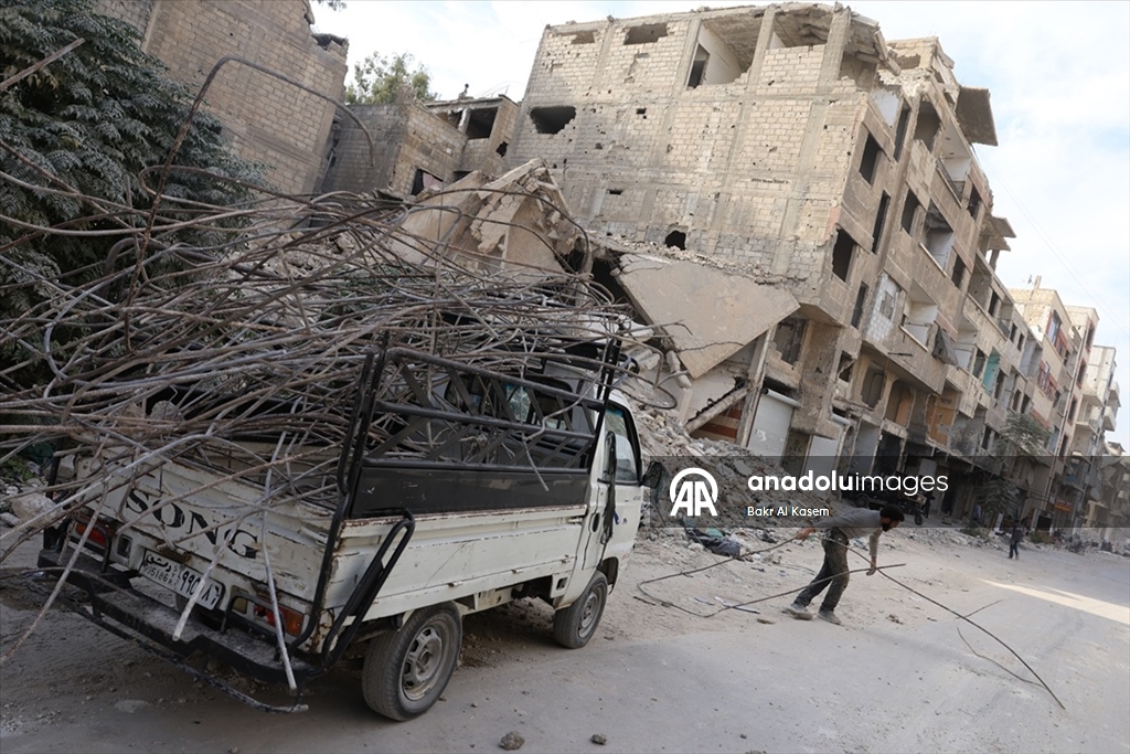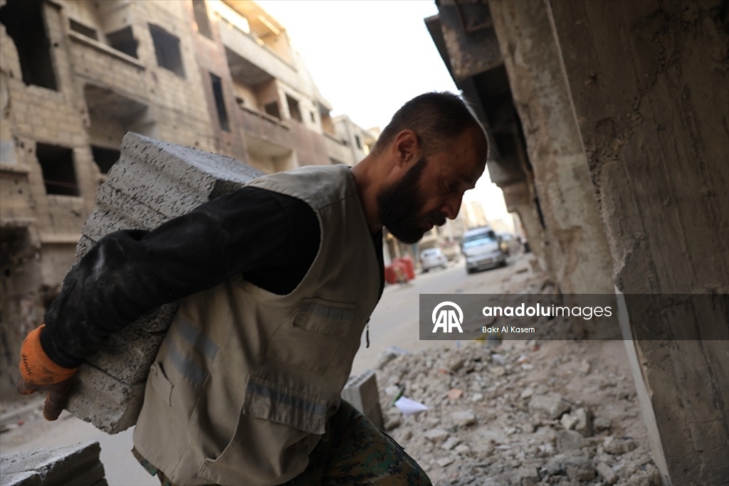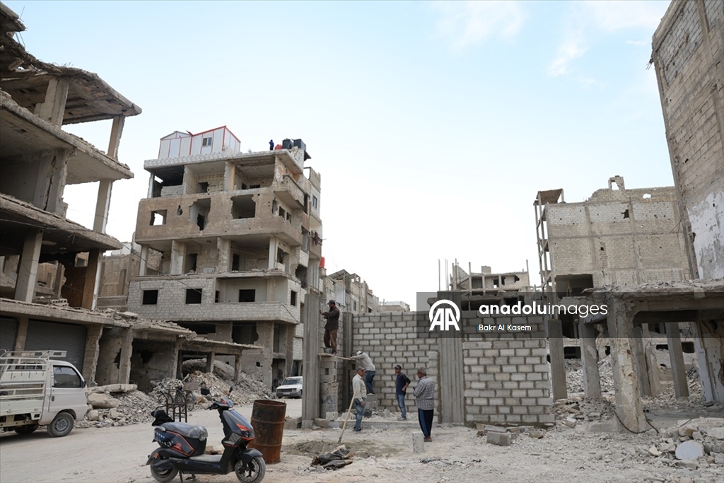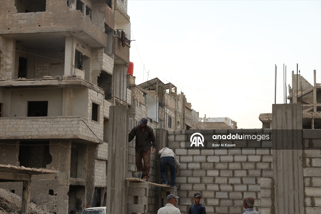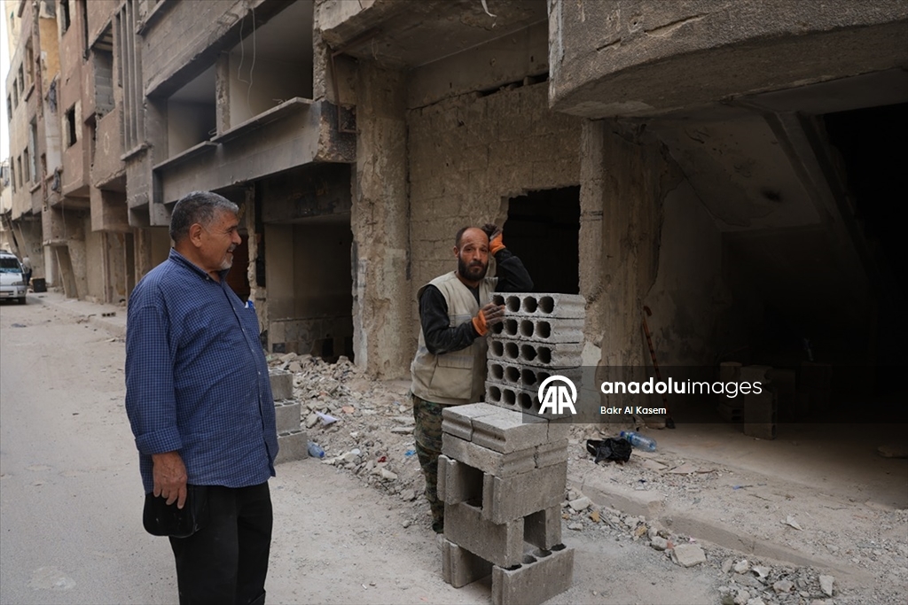 Başkent Şam'da, maddi imkansızlıklar nedeniyle devlet desteği olmadan yaşamlarını sürdüren birçok Suriyeli, yıkılan evlerine geri dönerek kendi imkanlarıyla yeniden inşa çalışmalarına başladı.
