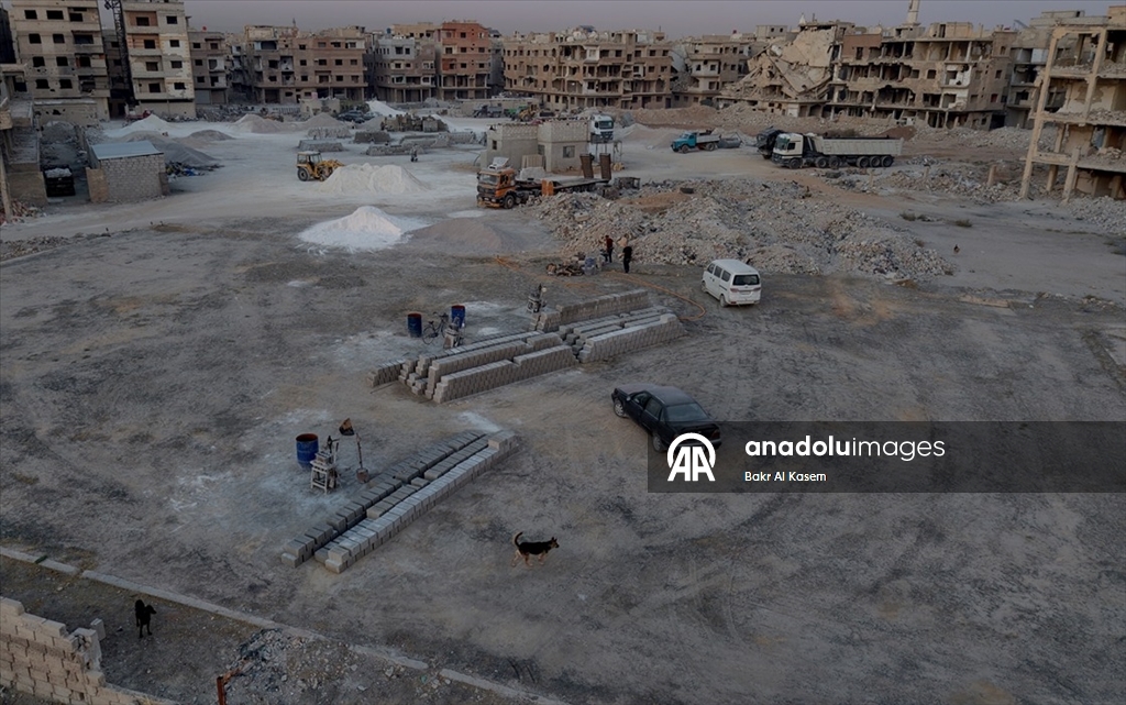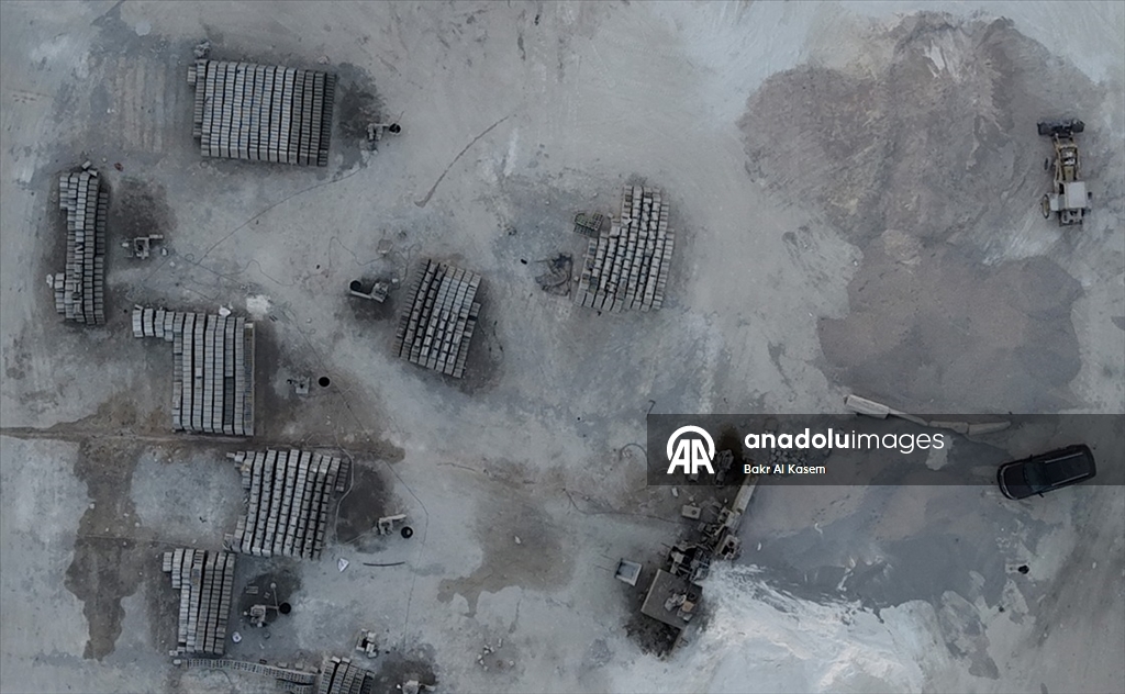 Suriyeliler savaşta yıkılan binaların enkazından tuğla üreterek evlerini yeniden inşa etmeye çalışıyor