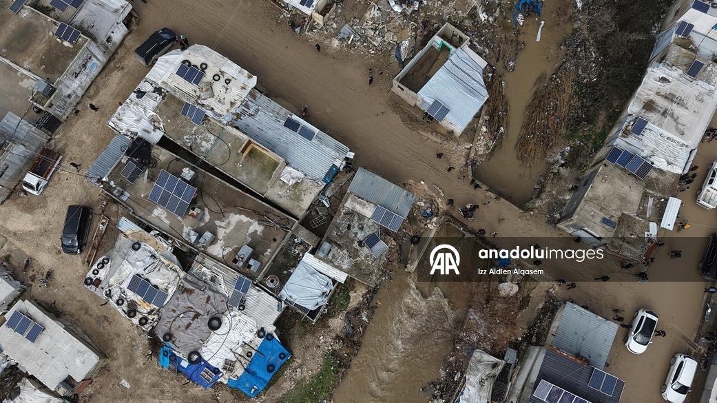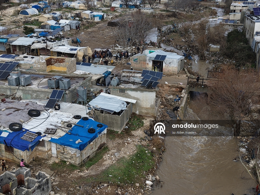 İdlib'in doğu kırsalında ani sağanakların ardından, dere kenarlarına kurulan derme çatma çadırların bulunduğu alanlar sular altında kaldı. Sel suları, köylerdeki yerleşim alanları ile tarım arazilerine zarar verdi. Bölgedeki 15 çadır kampı zarar gördü, yaklaşık 300 çadır ise kullanılamaz hale geldi.