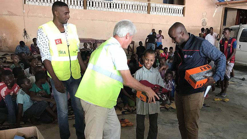TİKA, Türkiye'den temin edilerek Somali'ye gönderilen giysileri, ülkedeki Shooble, Kadare ve Sokak Çocukları Okulu'nun yetimhanelerinde kalan 350 çocuğa ulaştırdı.