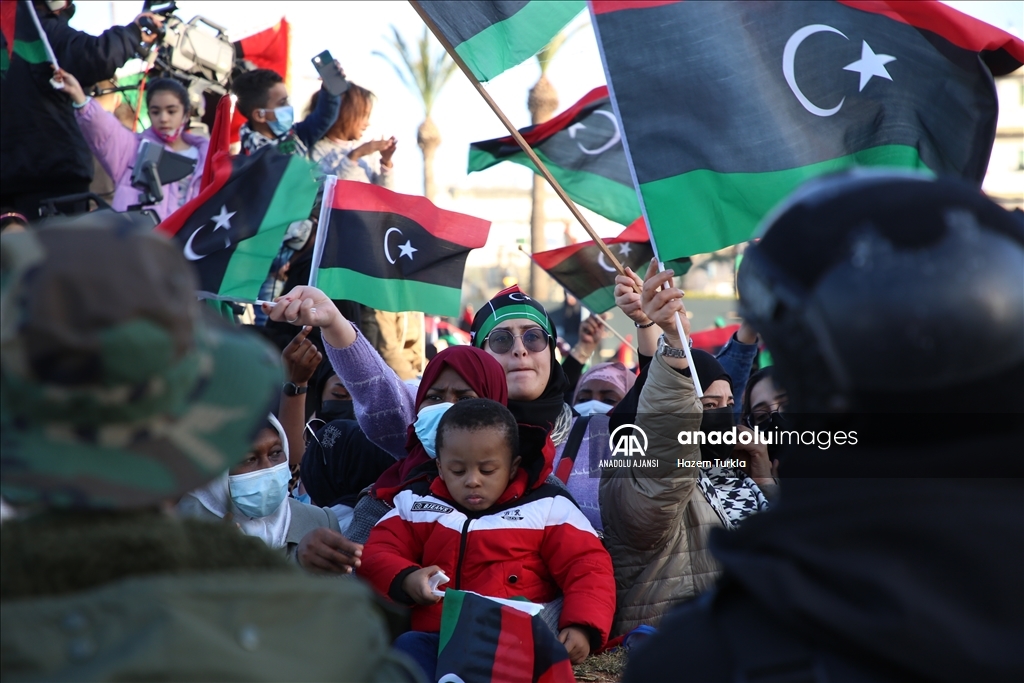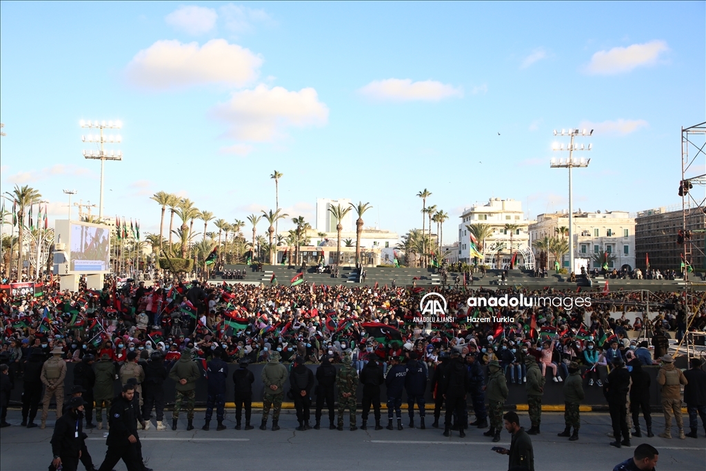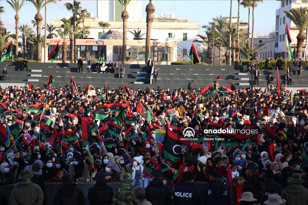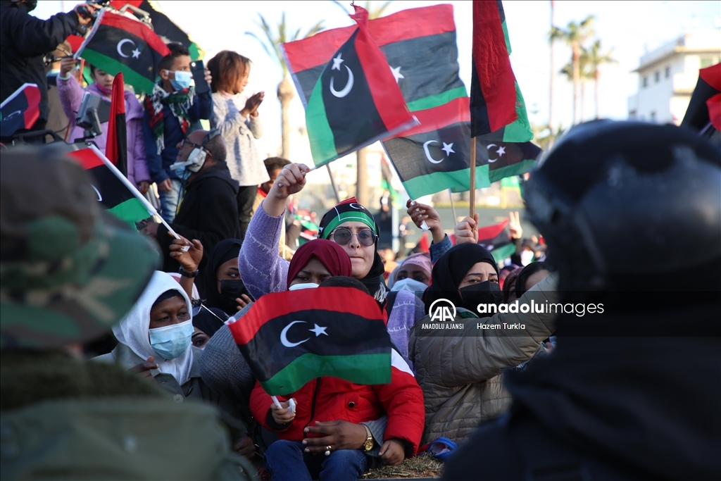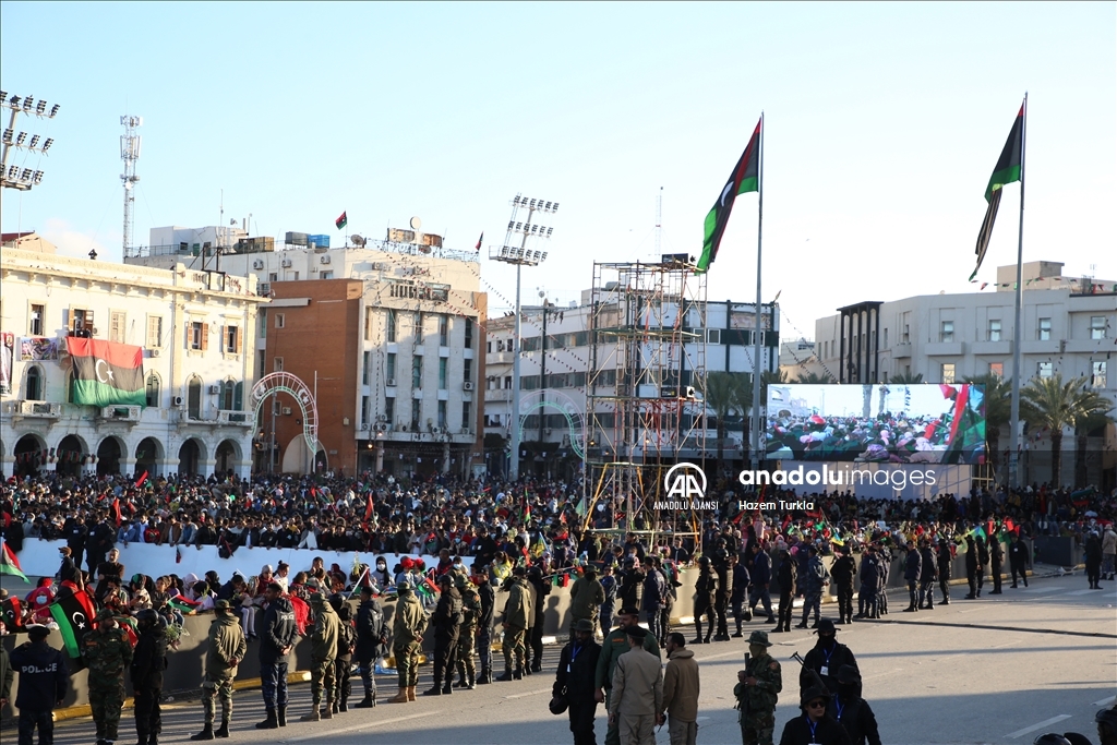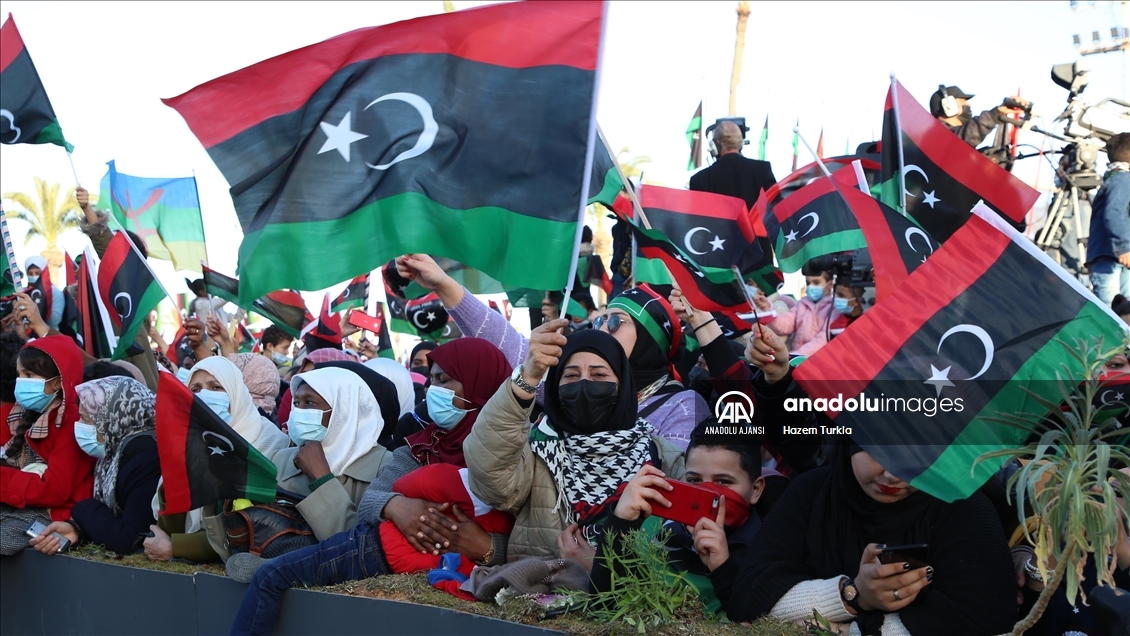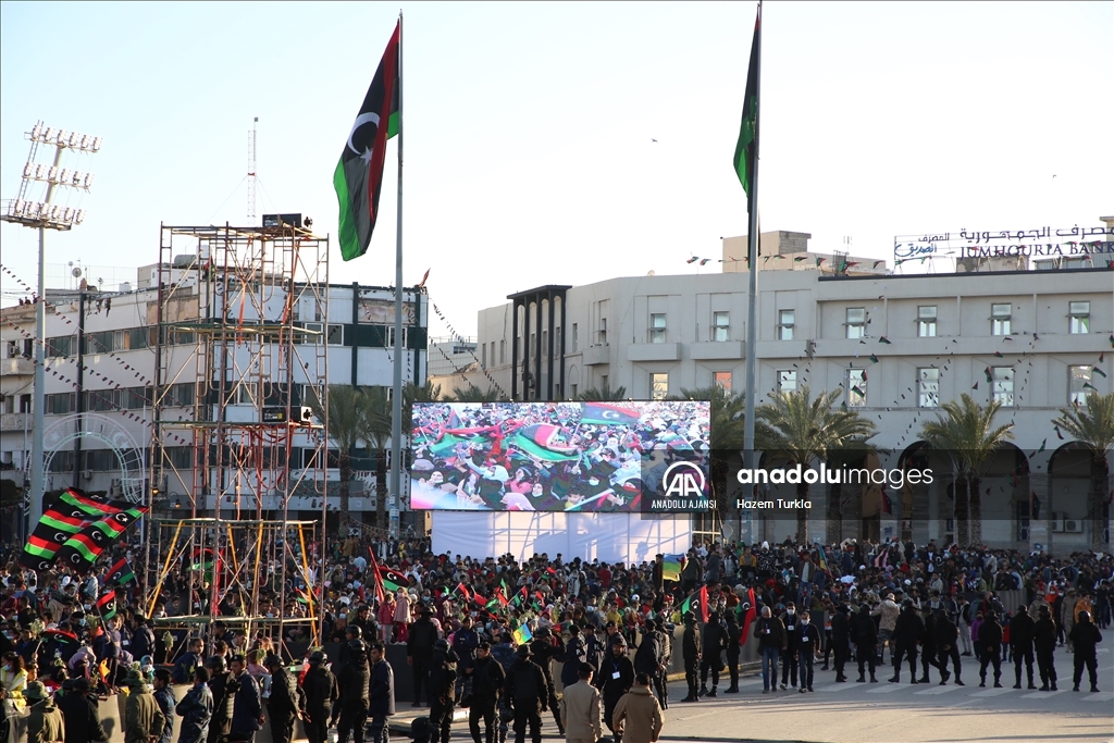 Libyalılar, 17 Şubat Devrimi'nin 11. yıl dönümünü başkent Trablus'taki tarihi Şehitler Meydanı'nda kutladı.