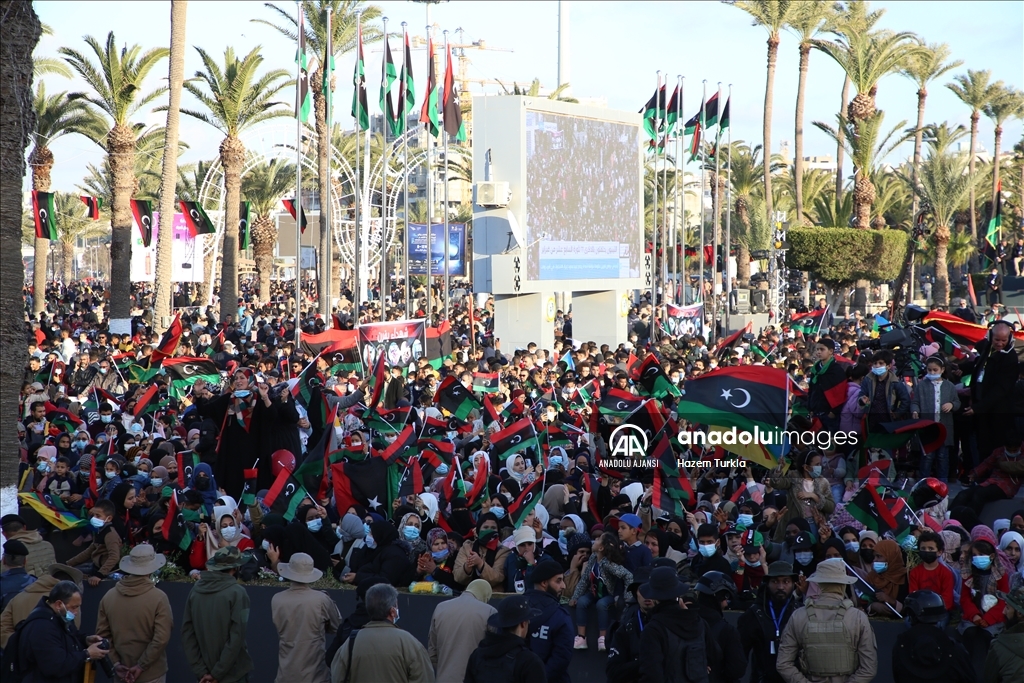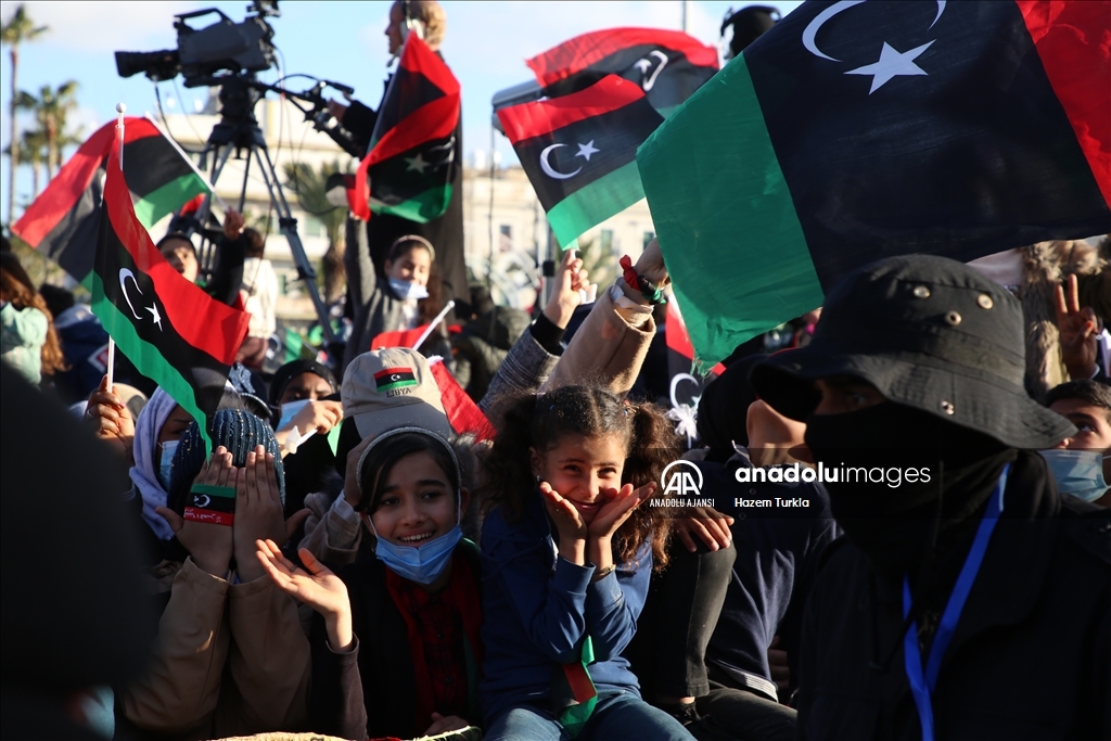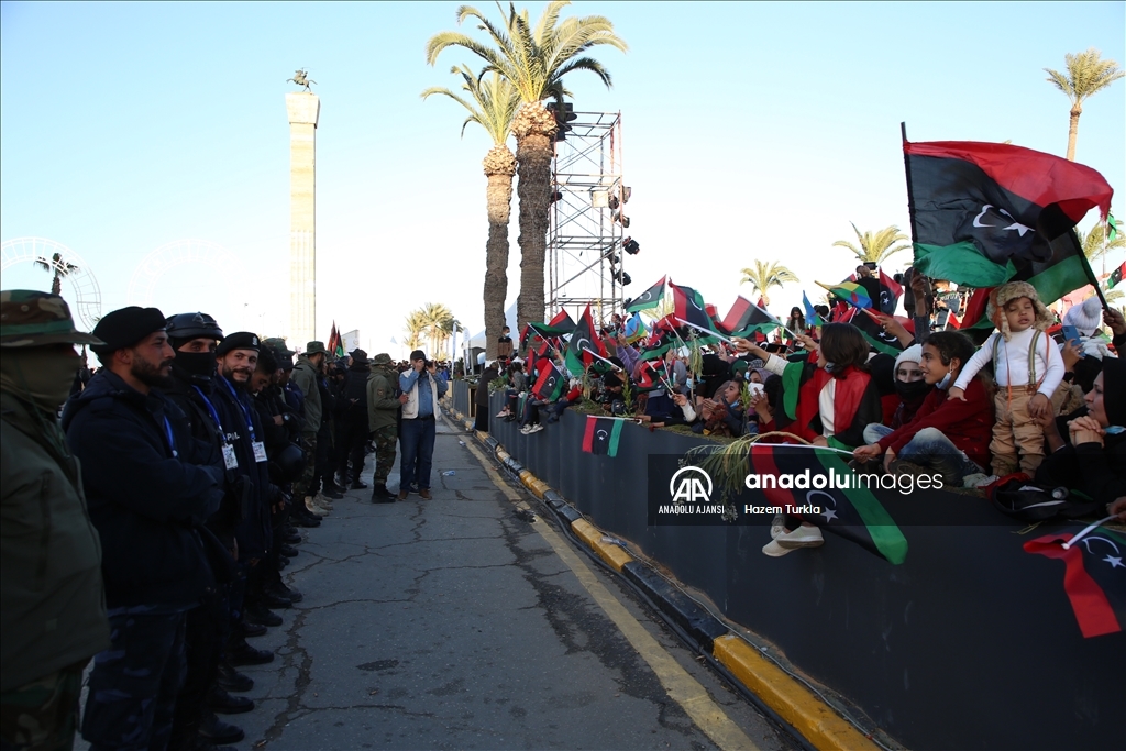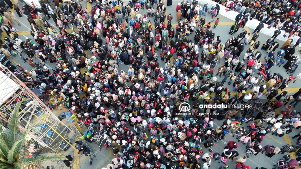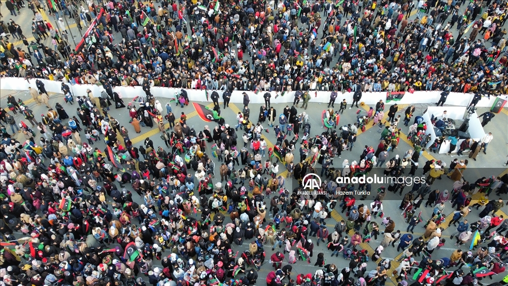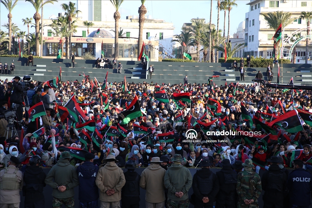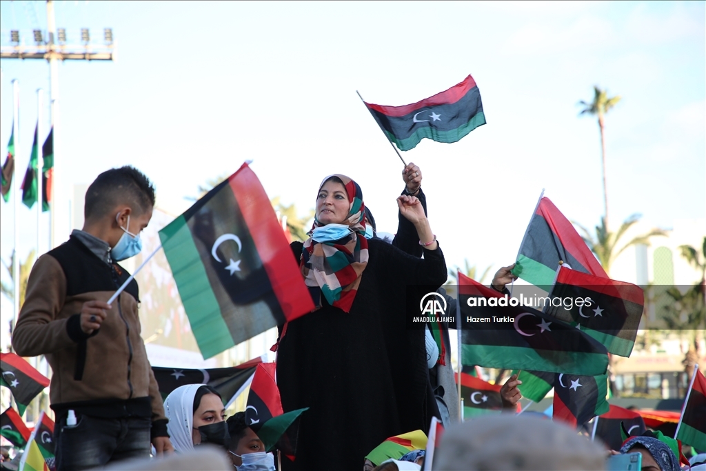 Libyalılar, 17 Şubat Devrimi'nin 11. yıl dönümünü başkent Trablus'taki tarihi Şehitler Meydanı'nda kutladı.