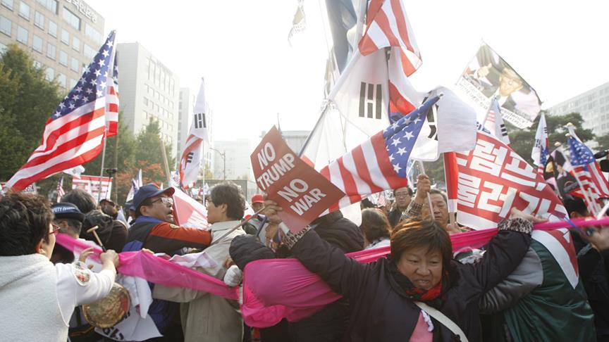 Trump destekçileri ise "Trump'ı seviyoruz" diye slogan atarak ABD ve Güney Kore arasındaki ittifakın güçlendirilmesi çağrısında bulundu.