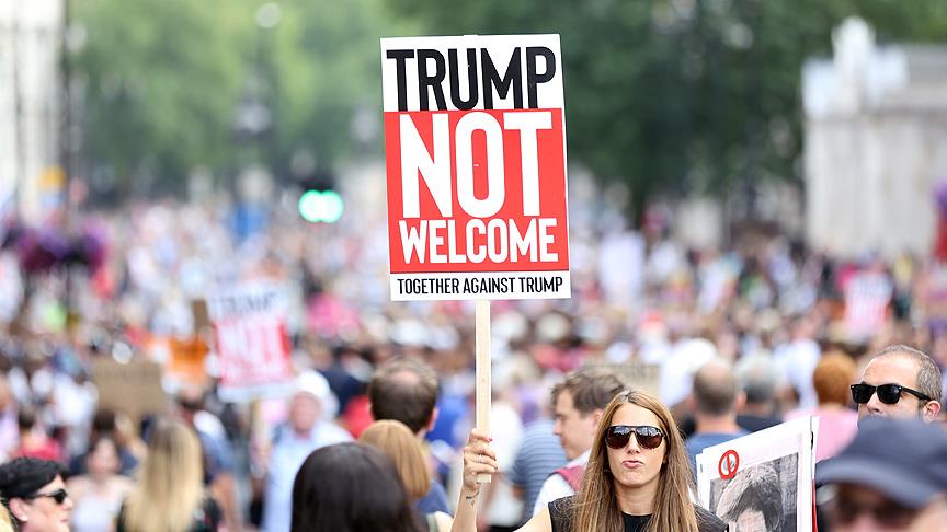 Perşembe günü adaya gelen Trump, başkent Londra başta olmak üzere ülke genelindeki protestolarla karşılanmıştı. Dün Londra'da yaklaşık 7 saat süren eyleme 250 binden fazla kişinin katıldığı bildirilmişti.