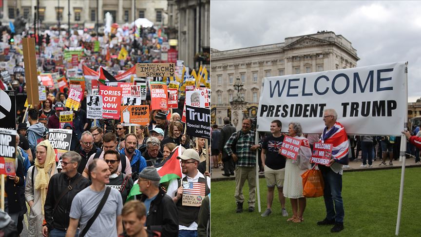 Ancak Trump'ın bu iddiasının aksine Londra'da yapılan Trump karşıtı gösteriye on binlerce kişinin katıldığı görüldü.