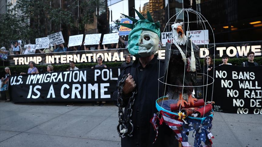 ABD Başkanı Donald Trump’ın 73 yaş gününde, Meksika sınırındaki göçmenlere yönelik politikaları New York’ta düzenlenen gösteride protesto edildi.