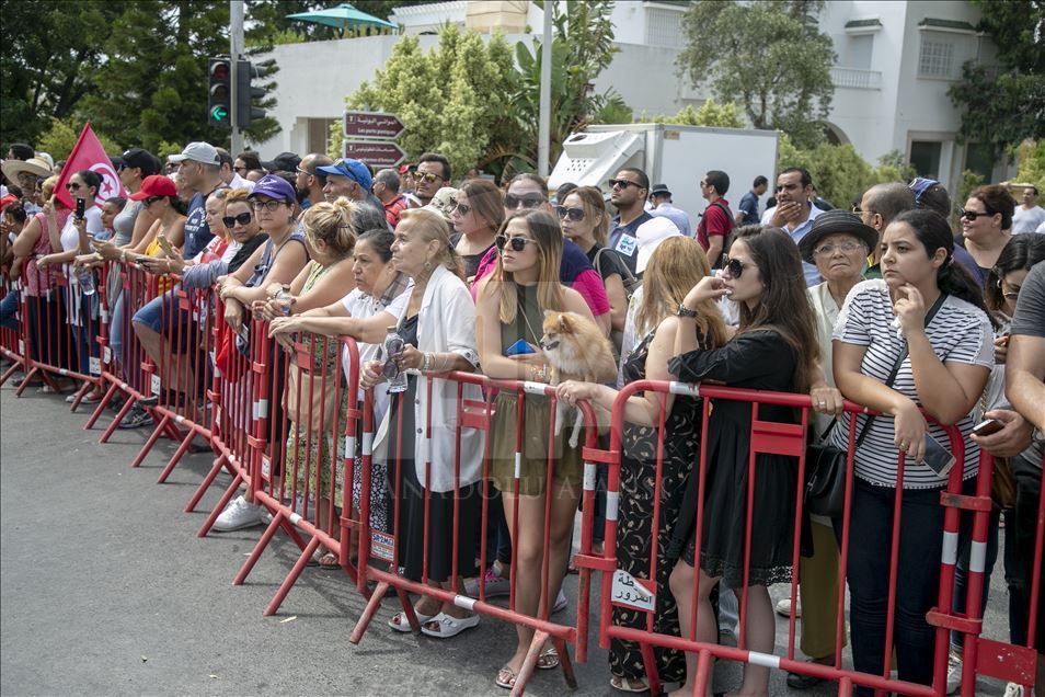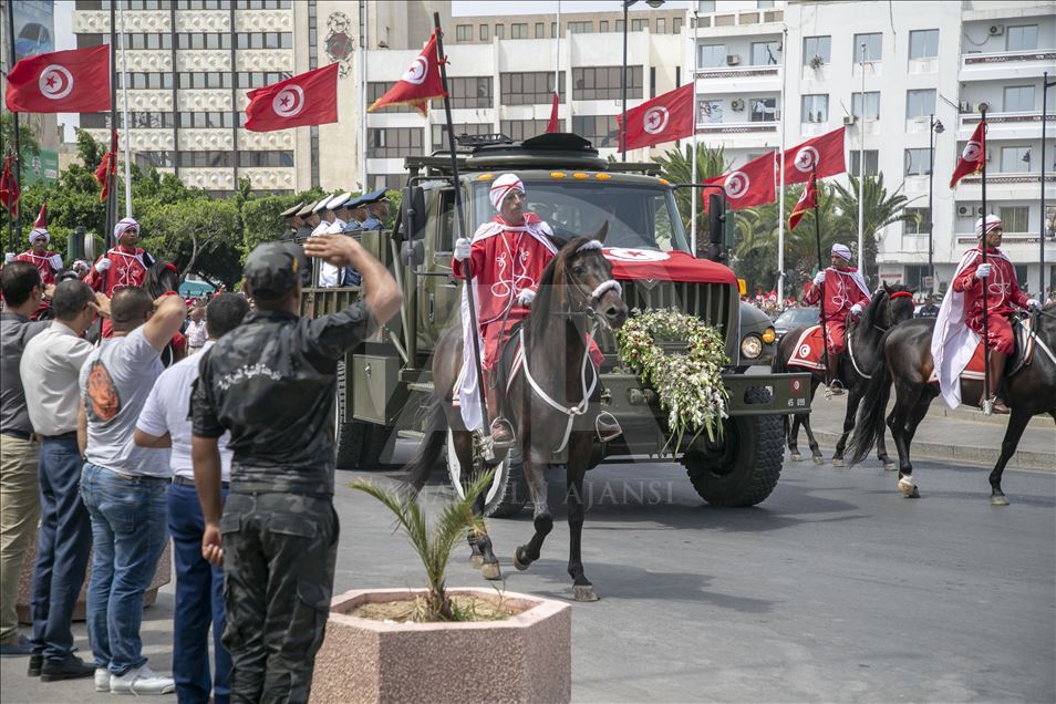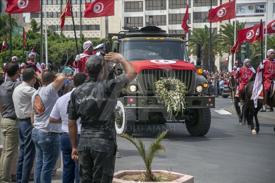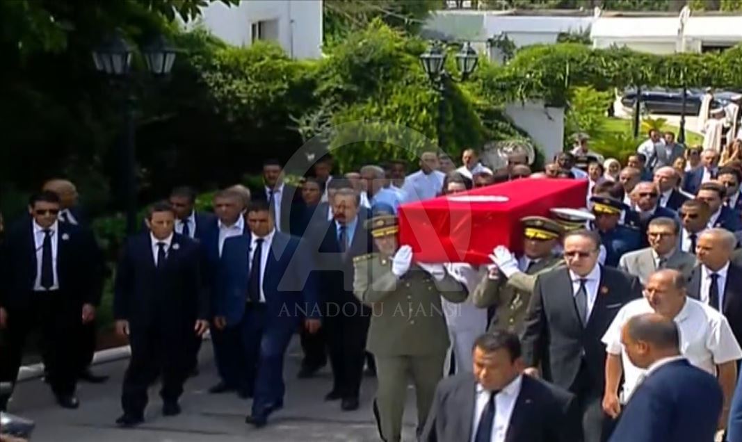 Başkent Tunus'ta tedavi gördüğü hastanede hayatını kaybeden Tunus Cumhurbaşkanı Baci Kaid es-Sibsi (93) için Kartaca Sarayı'nda cenaze töreni düzenlendi.