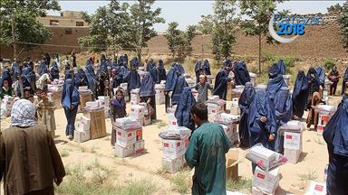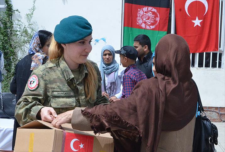 Afganistan'da görev yapan Türk askeri birliği, başkent Kabil'de 250 şehit ailesine gıda paketi dağıttı.