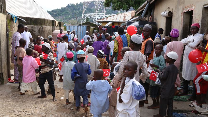 Akcan, "Nijerya'nın başkenti Abuja'ya bağlı Suleja bölgesindeyiz. Türk hayırseverlerin Aziz Mahmud Hüdayi Vakfı aracılığıyla bizlere ulaştırmış oldukları bayramlık kıyafetleri burada bulunan yetim öğrencilere dağıttık." dedi.