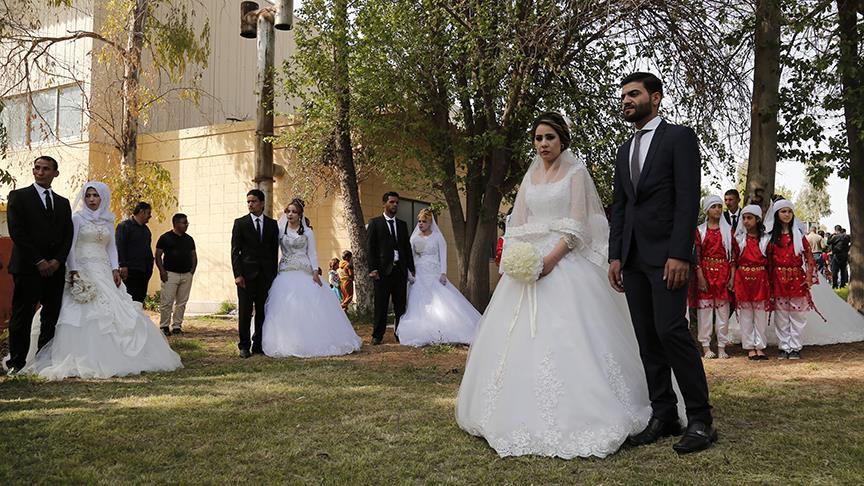 Irak Kürt Bölgesel Yönetimi'nin (IKBY) Erbil kentinde Suriyeliler başta olmak üzere ülkenin çeşitli bölgelerinden gelen 107 sığınmacı çift için toplu düğün töreni düzenlendi.