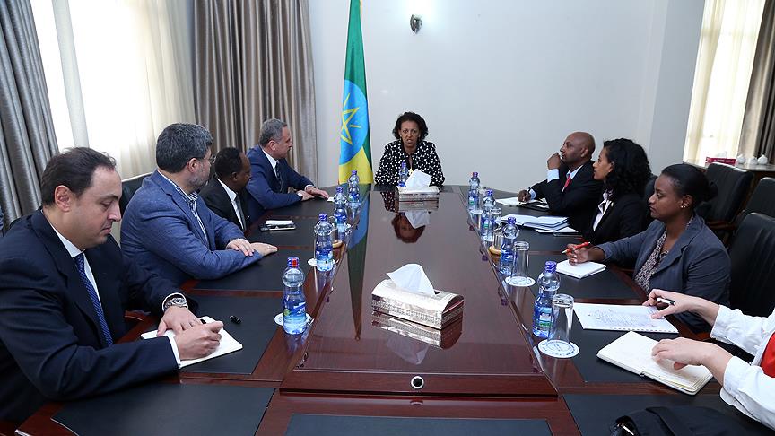 Başkent Addis Ababa'da Etiyopya Dışişlerinden Sorumlu Devlet Bakanı Hirut Zemene, Ulaştırma Bakanı Siraj Fegessa ve Hükümet Sözcüsü Ahmed Shidie'yi ziyaret eden vekiller, Cumhurbaşkanı Teshome tarafından Milli Saray'da kabul edildi.