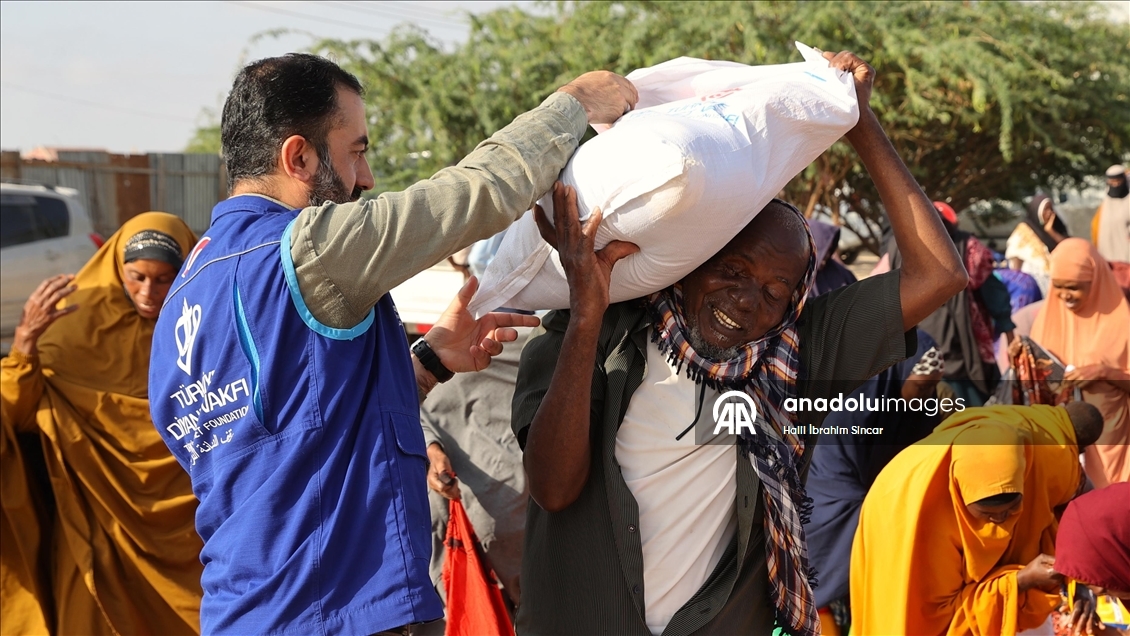 Türkiye Diyanet Vakfı (TDV) ramazanda, kuraklık yaşanan Somali'de 7 eyalette 13 bölgede ihtiyaç sahibi 8 bin 250 aileye gıda desteği sundu.