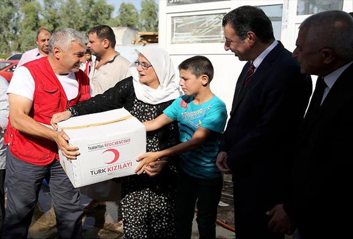 Irak Türkmen Cephesi (ITC) koordinesinde Türkiye'nin yardım elini Irak'taki muhtaçlara uzatmaya devam eden Kızılay ekibi, Erbil kent merkezinde ve Kerkük'ün Altınköprü beldesinde 300 aileye kuru gıda, bebe bisküvisi, mama, bez, temizlik malzemesi ve giysiden oluşan yardım dağıttı.