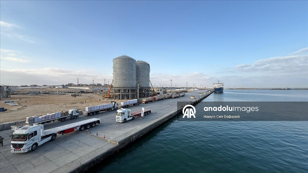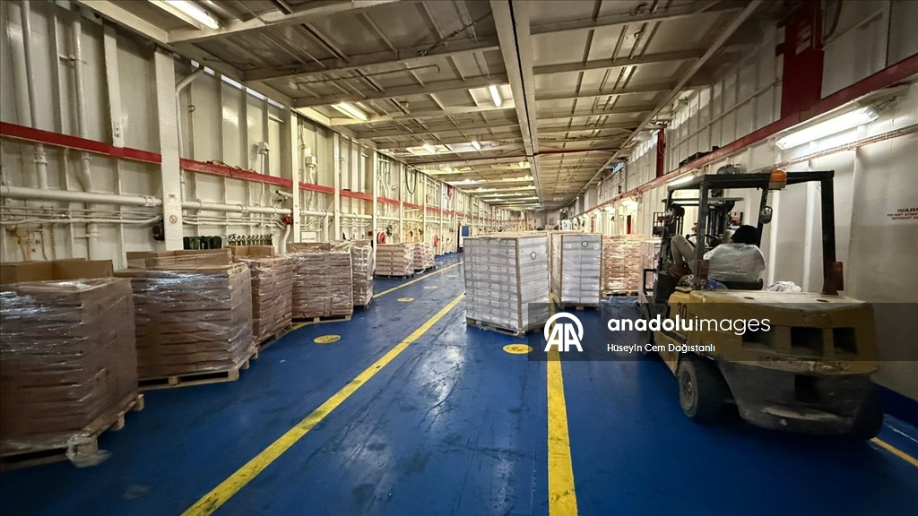 Afet ve Acil Durum Yönetimi Başkanlığı (AFAD) koordinasyonunda, 17 sivil toplum kuruluşunun destekleriyle hazırlanan 900 tonluk insani yardım malzemesi, 2 gün süren çalışmaların ardından gemiden tamamen indirildi.