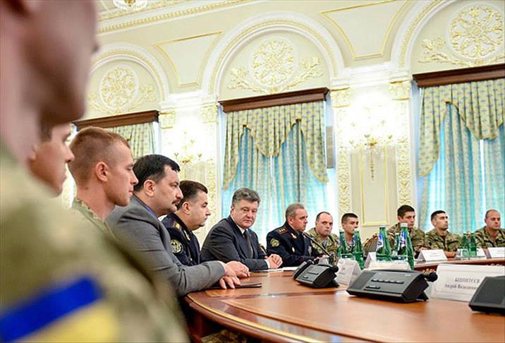 Poroşenko, doğudaki Slavyansk ve Kramatorsk kentlerinin ayrılıkçıların elinden kurtarılmasında cesaret ve kahramanlık gösteren askerleri devlet nişanı ve madalyalarla ödüllendirdi.