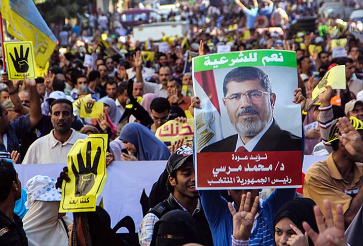 "Meşru Cumhurbaşkanı'nın darbe yönetimi tarafından yargılanmasını protesto etmek üzere tüm Mısır halkı sokaklara inecektir. Kalabalıklar Kahire'nin farklı noktalarından mahkemenin yapılacağı merkeze doğru yürüyüşe geçecek."