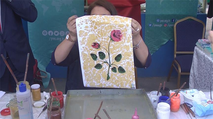 Ürdün'ün başkenti Amman'da düzenlenen 14. Uluslararası Şehir Festivali'nde Türk kağıt süsleme sanatı "ebru" yoğun ilgi gördü.