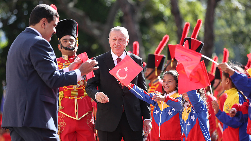 Devlet Başkanı Maduro, Türkiye'nin uzun bir tarihe sahip olduğunu hatırlatarak "Bugün, büyük Türkiye'nin büyük Cumhurbaşkanı, dostum Erdoğan'ın yanındayım. Türkiye, son bin yılda dünya üzerinde çok önemli bir rol oynadı. Türkiye'nin Türk kültürüne, dünya kültürüne, bilimine, sanatına, siyasetine büyük katkısı oldu, bu oldukça etkileyici. Türkiye, dünyayı tekrar uyandırdı ve Türkiye bu çok kutuplu, çok merkezli yeni dünyada hayati bir rol oynayacak." dedi.
