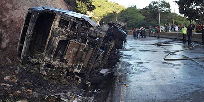 Caracas İtfaiye şefi William Martinez, tanker sürücüsünün Caracas'taki bir karayolunda seyrederken aracının kontrolünü kaybetmesi nedeniyle meydana geldiği sanılan kazada, tankerden sızan yakıtın alev alması sonucu çevrede bulunan 7 aracın yandığını söyledi.