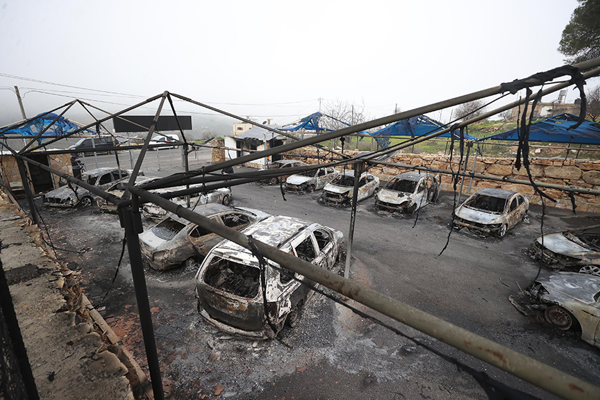 Yahudi yerleşimciler Ramallah yakınlarında bir otomobil galerisini ateşe verdi