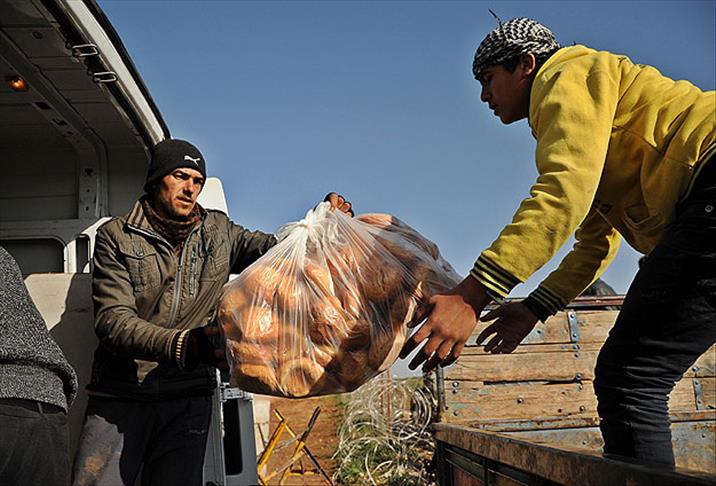 Hatay'ın Reyhanlı ilçesine bağlı Bükülmez köyü sınırından, çoğunluğu kadın ve çocukların oluşturduğu çadırlarda kalan Suriyelilere ulaştırılmak üzere 25 ton un ve 17 bin kişilik kumanya paketinden oluşan gıda yardımı yapıldı.