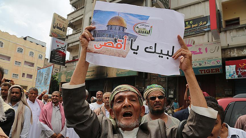 Husiler tarafından 3 yıldır kuşatma altında tutulan ülkenin güney batısındaki Taiz kentinde yüzlerce gösterici Filistin halkına destek vermek için Cemal Abdunnasır Caddesinde toplandı. Göstericiler ABD'nin Tel Aviv Büyükelçiliğini Kudüs'e taşıması ve İsrail'in Gazze sınırında Filistinlilere yönelik katliamlarına karşı slogan attı.