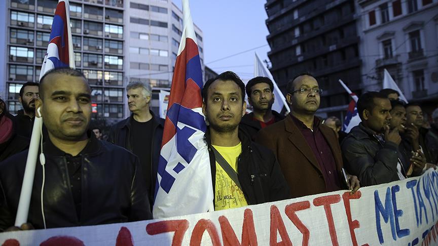 Mücadeleci İşçiler Cephesi'nin (PAME) çağrısıyla bir araya gelen yüzlerce gösterici, başkent Atina'daki Omania Meydanı'nda toplanarak, meclisin bulunduğu Sintagma Meydanı'na yürüdü.