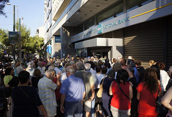Yunanistan'ın Uluslararası Para Fonu'na (IMF) borcunu ödemeyerek, kreditörlerin kemer sıkma politikalarını 5 Temmuz'da referanduma götürme kararı almasının ardından, ülkedeki emekliler maaşlarından bir bölümü çekebilmek için yine kuyruğa girdi.