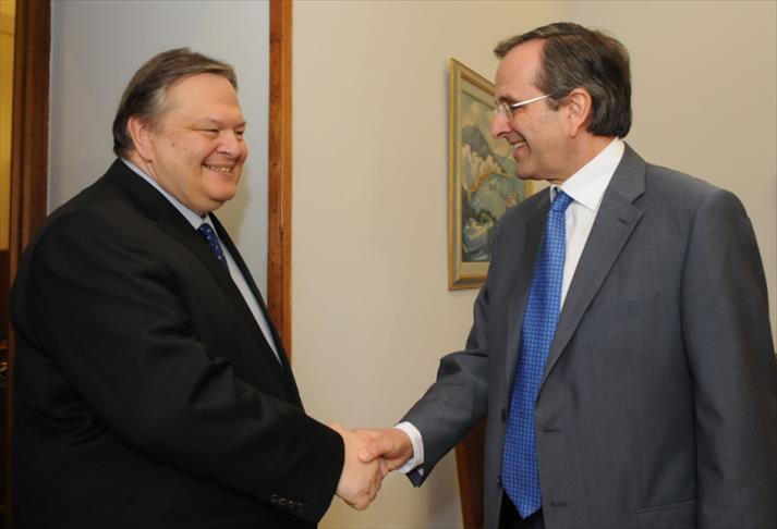 ND lideri Samaras, Radikal Sol Koalisyon (SYRIZA) lideri Alexis Tsipras'ın ardından hükümeti kurma yetkisini alan PASOK lideri Evangelos Venizelos'un, ülkenin avro bölgesinde kalması çerçevesinde AB yanlısı güçlerle "ulusal birlik hükümeti" kurma teklifi ilk karşılığını dün akşam buldu.