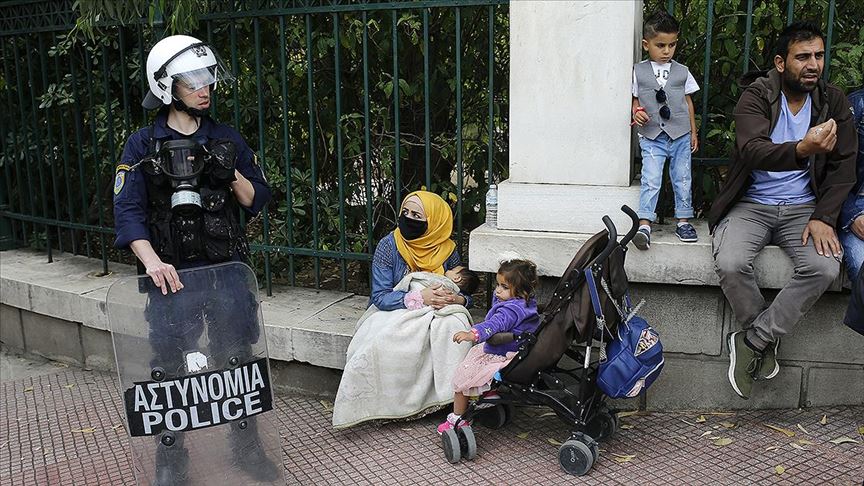 Birleşmiş Milletler Mülteciler Yüksek Komiserliğinin (BMMYK) uyguladığı mülteciler için konaklama yardımı içeren programın sona ermesiyle evsiz kalma tehlikesiyle karşılaşan mülteciler, Atina'daki Avrupa Birliği (AB) ofislerinin bulunduğu binanın önünde oturma eylemi yaptı.