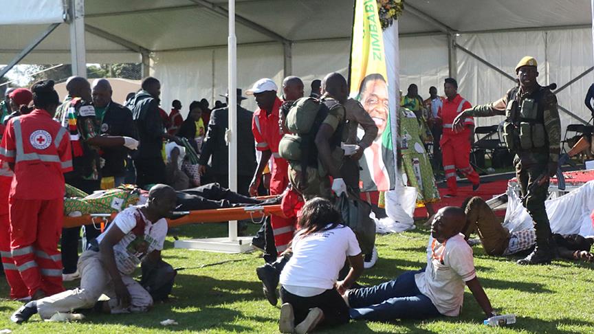 Mnangagwa'nın yara almadan kurtulduğu bombalı saldırıda, Devlet Başkanı Yardımcısı Kembo Mohadi ve bazı bakanların da aralarında bulunduğu 8 kişi yaralandı.
