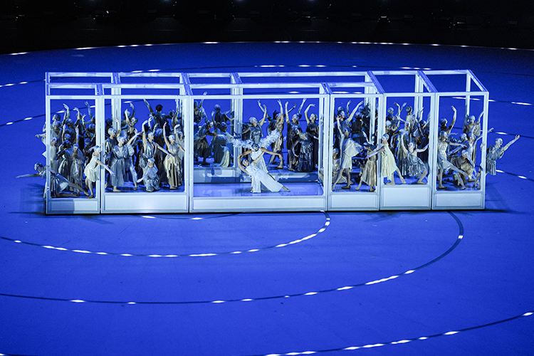 Yaşayan bir müzeye dönüştürülen sahnede, İtalyan hayal gücü ve yaratıcılığının sembolik kategorilerinden ilham alan karakterlerin görkemli geçit töreni gerçekleştirildi.