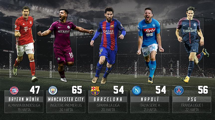 İngiltere'de Manchester City, İspanya'da Barcelona, Almanya'da Bayern Münih, İtalya'da Napoli, Fransa'da ise Paris Saint-Germain (PSG), puan tablosunun zirvesinde yer aldı.