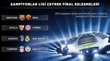 Milli futbolcu Cengiz Ünder'in forma giydiği Roma ile Barcelona arasındaki çeyrek final maçlarının ilki 4 Nisan Çarşamba günü Camp Nou Stadı'nda, rövanş ise 10 Nisan Salı günü Roma Olimpiyat Stadı'nda oynanacak.