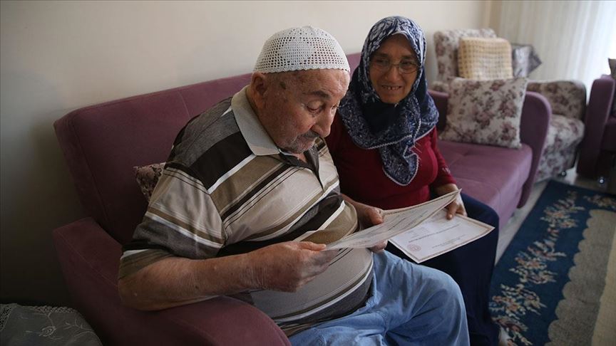 Ahmet Sağlam ve Nezahat Günaydın, okuma yazmayı öğrenebilmek için geçen yıl Cumhurbaşkanı Recep Tayyip Erdoğan ve eşi Emine Erdoğan'ın himayelerinde başlatılan seferberlik kapsamında, Gölcük Halk Eğitim Merkezi'ne başvurdu.