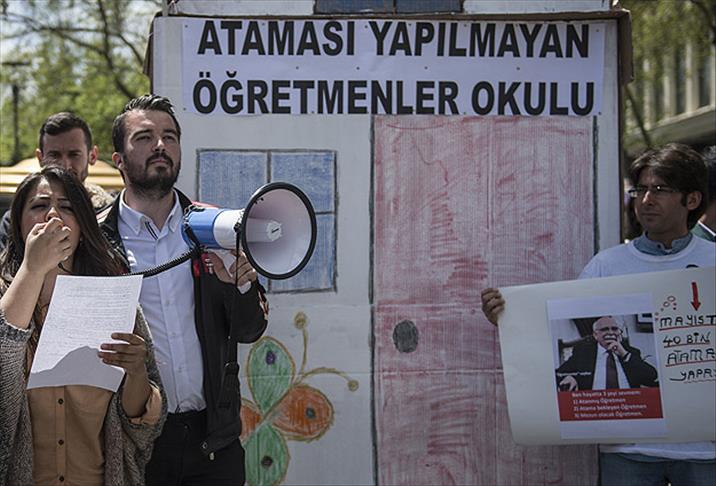 KPSS'de yeterli puanı almalarına karşın atamalarının yapılmadığı gerekçesiyle Kızılay'da toplanan bir grup öğretmen, Güvenpark'ta eylem yaptı. Eylemde, karton kutulardan yapılan, "Ataması yapılmayan öğretmenler okulu" adı verilen bir maket de yer aldı.