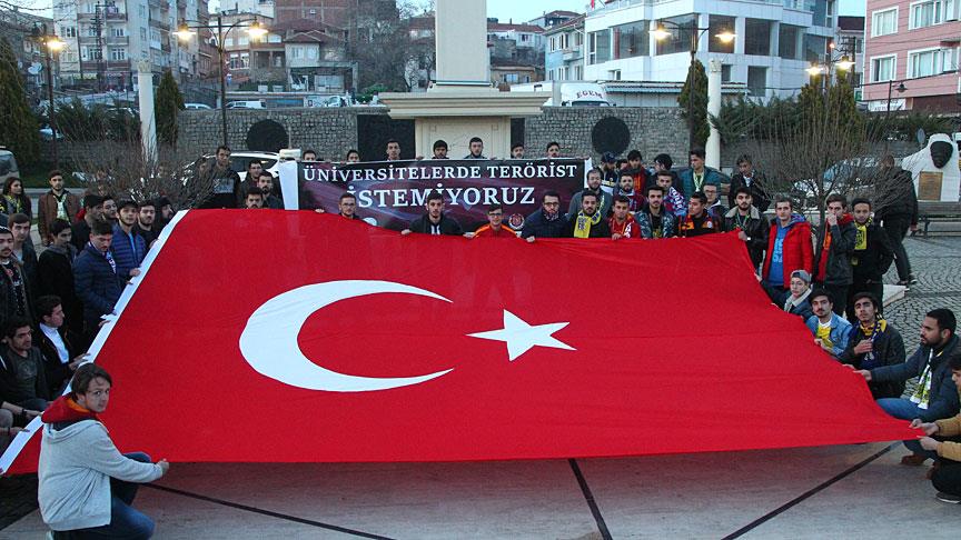 Şevket Dingiloğlu Parkı'nda toplanan grup "Üniversitelerde terörist istemiyoruz" yazılı pankart ile Türk bayrağı açtı.
