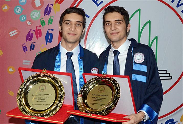 Kürşat Karaman (24), törenin ardından gazetecilere yaptığı açıklamada, fakülteye başladıkları günlerde arkadaşları tarafından ikiziyle sürekli karıştırıldıklarını anlattı.