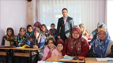 Çepinler Mahallesi'nde düzenlenen kursa siyah önlük ve beyaz yaka ile giden yaşları 60 ila 84 arasında değişen 8 kadın da okuma yazma öğrenerek belgelerini aldı.