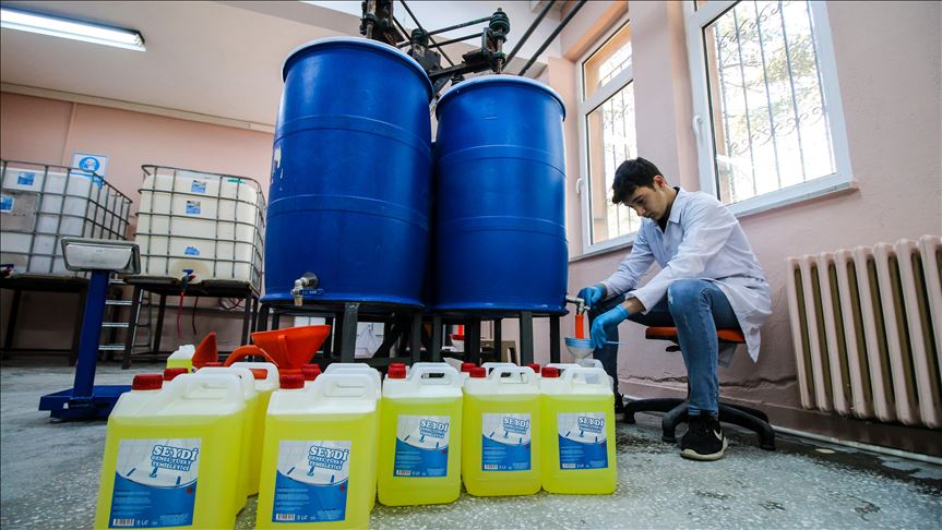 Seydişehir Mesleki ve Teknik Anadolu Lisesi Kimya Bölümü öğrencileri, 19 çeşit temizlik malzemesi üretiyor.