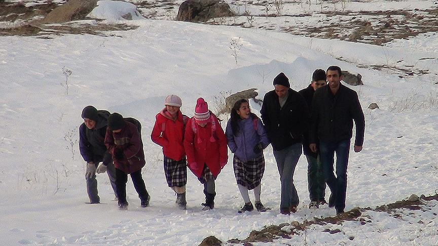 Hava sıcaklığının sıfırın altında 20 dereceye kadar düştüğü yörede, soğuk nedeniyle büyük güçlük yaşayan küçük çocuklara, bölgenin dağlık olması ve yaban hayvanlarının bulunması nedeniyle fırsat oldukça mahalleden büyükleri eşlik ediyor.