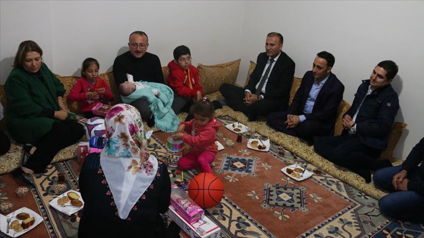 Siirt Valisi Ali Fuat Atik ve eşi Fulya Atik de proje kapsamında Yeni Mahalle'de 3'ü engelli 4 çocuklu Timurtaş ailesinin misafiri oldu.