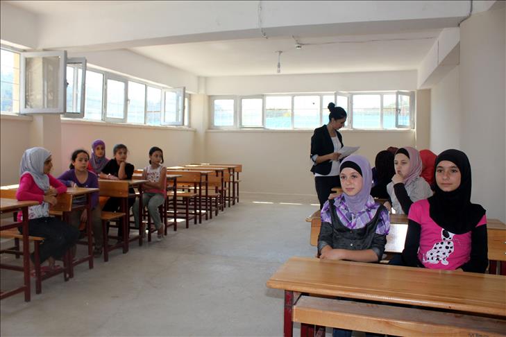 Ülkelerindeki olaylardan kaçarak Türkiye'ye sığınan ve Yayladağı ilçesindeki çadır kentlerde kalan Suriyeli çocuklar, Başbakanlık Afet ve Acil Durum Yönetimi Başkanlığı (AFAD) ve Türk Kızılayı tarafından çadır kent içerisinde oluşturulan sınıflarda derslerine başladı.