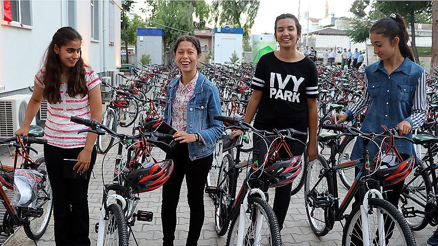 Hatay'da, Temel Eğitimden Ortaöğretime Geçiş (TEOG) sınavında başarı gösteren öğrencilere Altınözü Kaymakamlığı tarafından bisiklet ve kask hediye edildi.