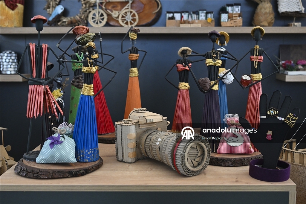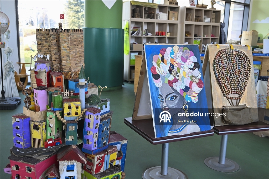 Merkezin sergi alanında sıfır atık prensibiyle hazırlanmış 500'e yakın ürünün bulunduğunu dile getiren Kahraman, çocukların bu ürünlere yoğun ilgi gösterdiğini söyledi.