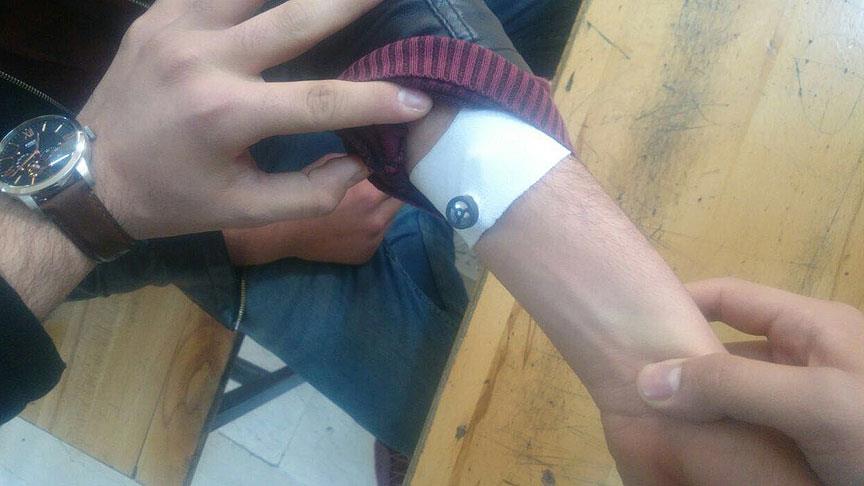 Gözaltına alınan ve emniyette sorgulanan zanlıların üst aramasında, cep telefonları ile bluetooth cihazını sabitleyen kol bandı ele geçirildi.